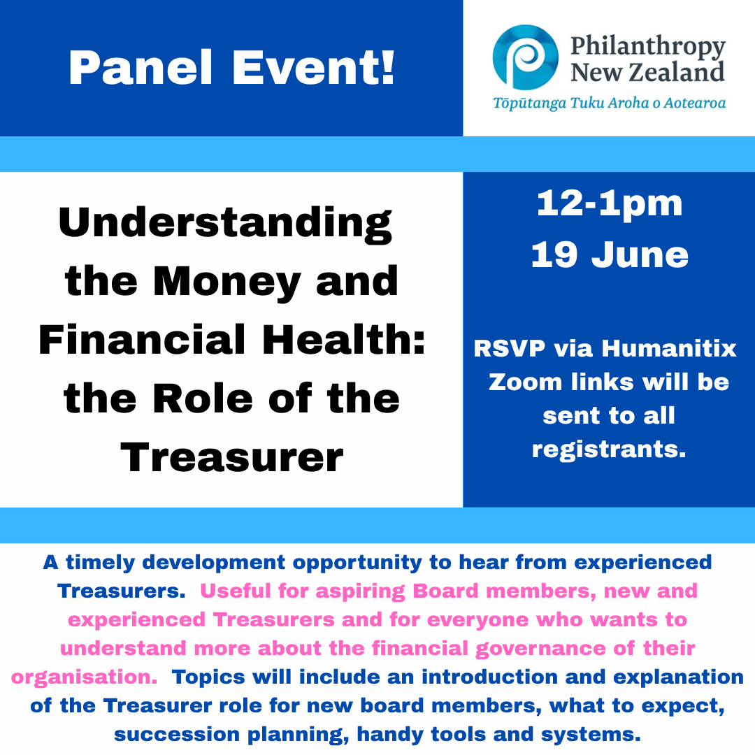 A timely development opportunity to hear from experienced Treasurers. Useful for aspiring Board members, new and experienced Treasurers and for everyone who wants to understand more about the financial governance of their organisation. Topics will include an introduction and explanation of the Treasurer role for new board members, what to expect, succession planning, handy tools and systems.