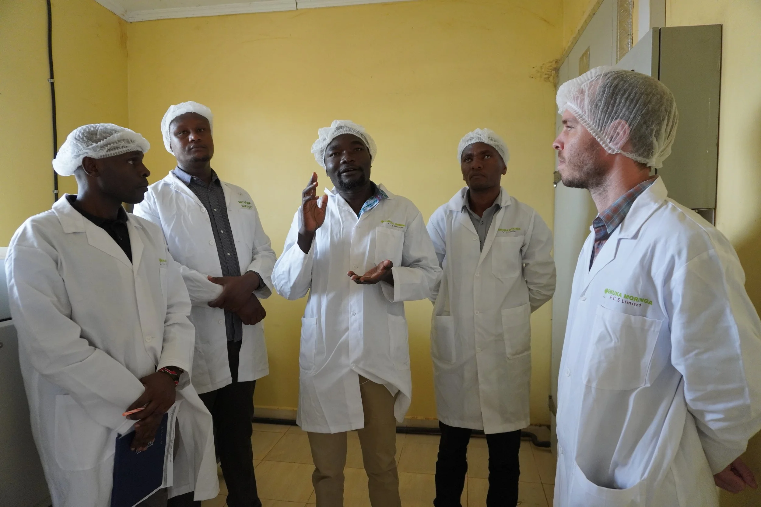 Image Caption: ChildFund New Zealand’s Programme Manager Matt Fowler with local partners at the opening of the Moringa factory in Emali, Kenya in 2022.